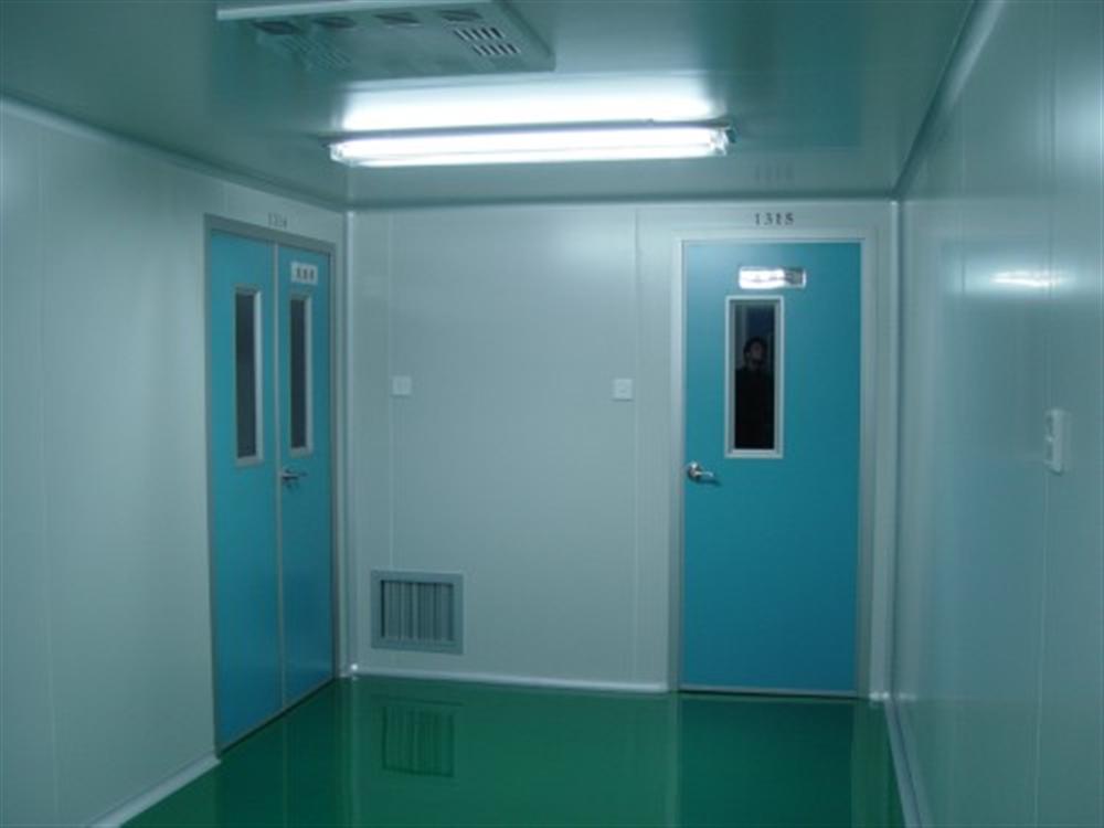 1.潔淨室牆、頂板材料一般采用50mm厚的夾芯彩鋼板、淨化專(zhuan) 用的氧化鋁型材製造。門采用淨化密閉門,窗采用鋁合金玻璃固定窗。