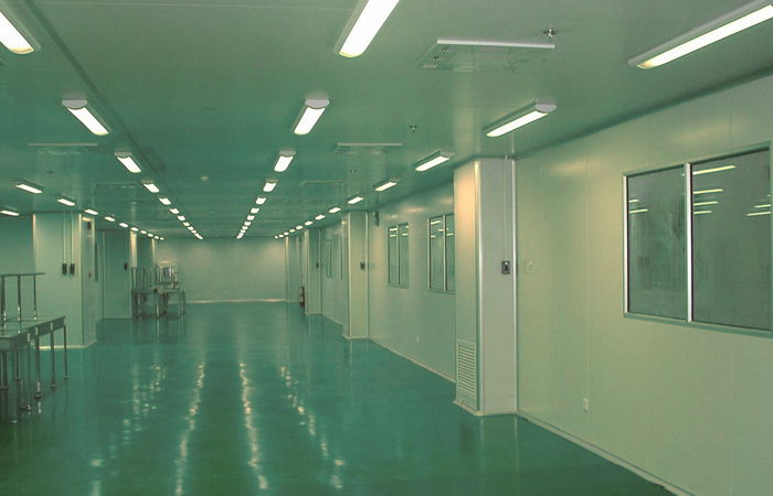 車間的地麵要用防滑,堅固,不滲水,易清潔,耐腐蝕的材料鋪製,淨化車間地麵表麵要平坦,不積水。車間整個(ge) 地麵的水平在設計和建造時應該比廠區的地麵水平略高,地麵有的斜坡度。